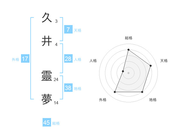 久井 靈夢さんの総格は45画の4点!