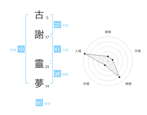 古謝 靈夢さんの総格は60画の1点!