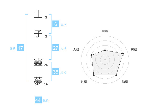 土子 靈夢さんの総格は44画の2点!