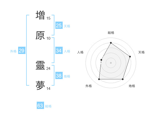 増原 靈夢さんを姓名の画数から五運を鑑定