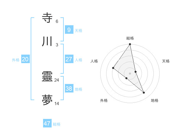 寺川 靈夢さんの総格は47画の5点!