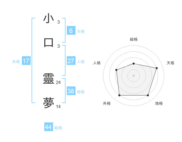小口 靈夢さんを姓名の画数から五運を鑑定