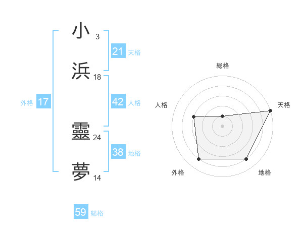 小浜 靈夢さんの総格は59画の1点!
