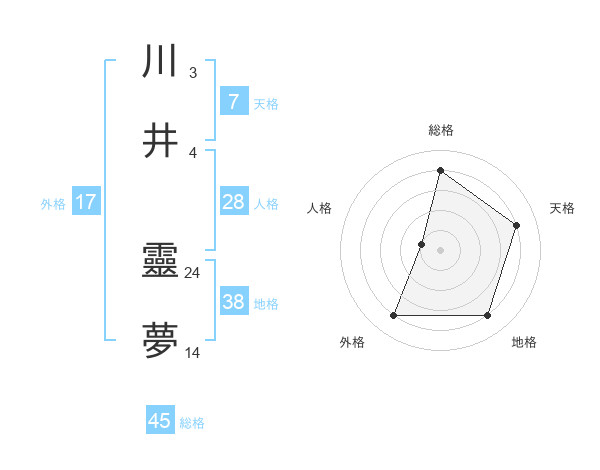 川井 靈夢さんの総格は45画の4点!