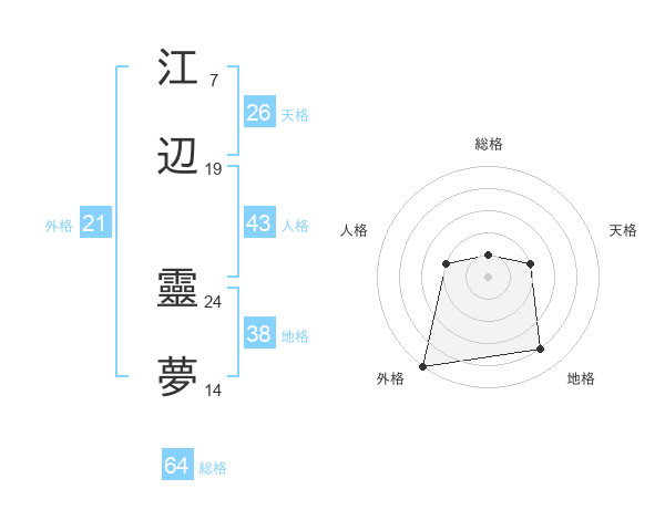 江辺 靈夢さんの総格は64画の1点!