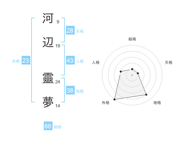 河辺 靈夢さんを姓名の画数から五運を鑑定