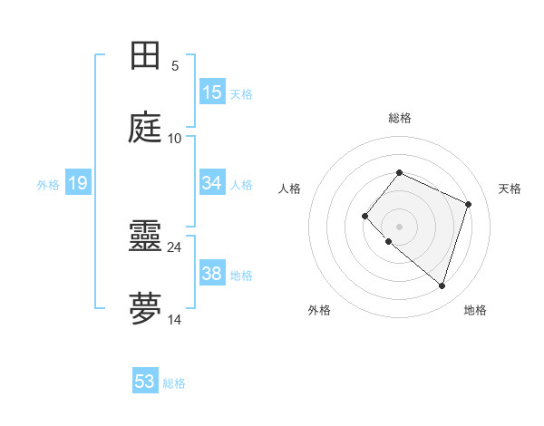 田庭 靈夢さんの天格は15画の4点!