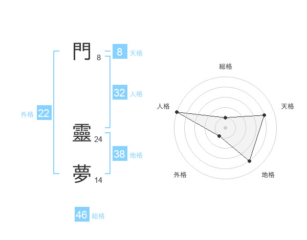 門 靈夢さんの天格は8画の4点!