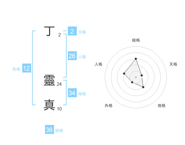 丁 靈真さんの総格は36画の3点!