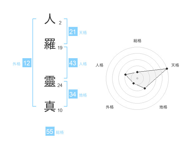 人羅 靈真さんの総格は55画の1点!