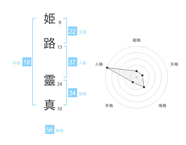 姫路 靈真さんを姓名の画数から五運を鑑定