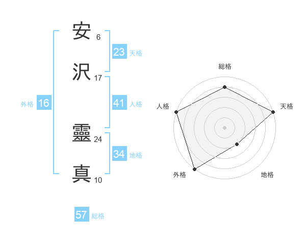 安沢 靈真さんを姓名の画数から五運を鑑定
