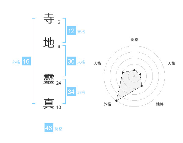 寺地 靈真さんの総格は46画の1点!