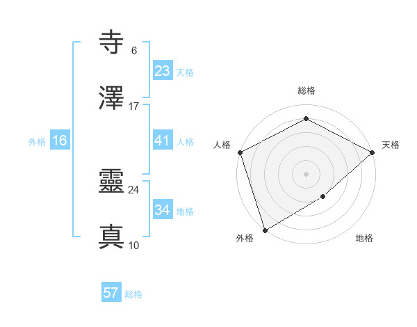 寺澤 靈真さんを姓名の画数から五運を鑑定