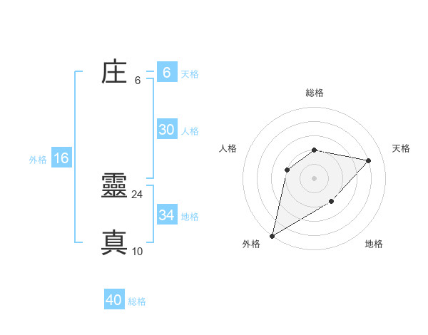 庄 靈真さんの総格は40画の2点!