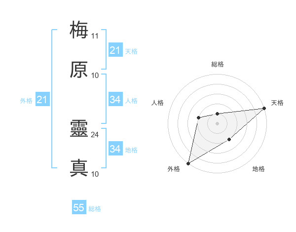 梅原 靈真さんを姓名の画数から五運を鑑定