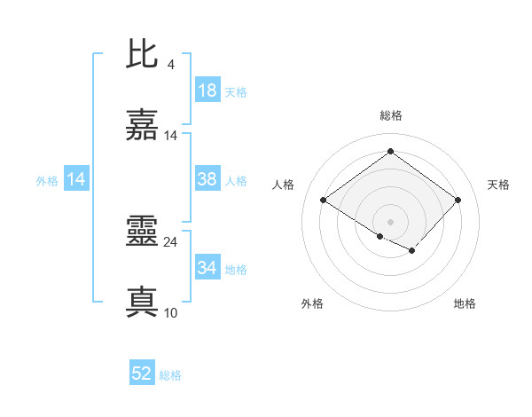 比嘉 靈真さんの総格は52画の4点!