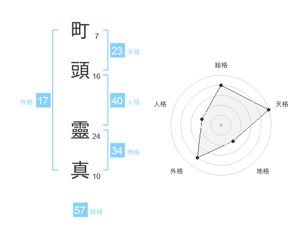 町頭 靈真さんを姓名の画数から五運を鑑定