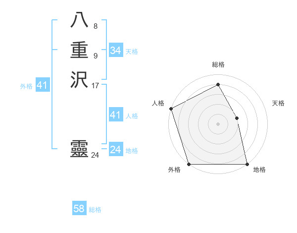 八重沢 靈さんを姓名の画数から五運を鑑定