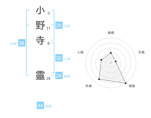 小野寺 靈さんを姓名の画数から五運を鑑定