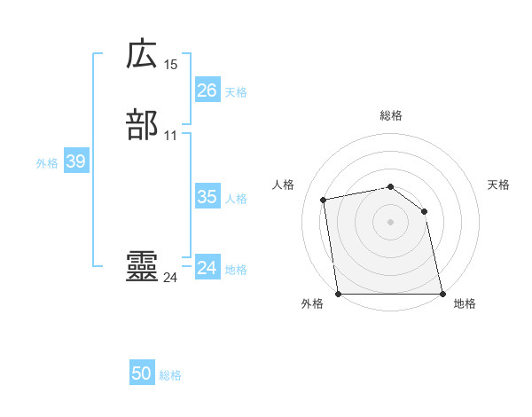 広部 靈さんの総格は50画の2点!