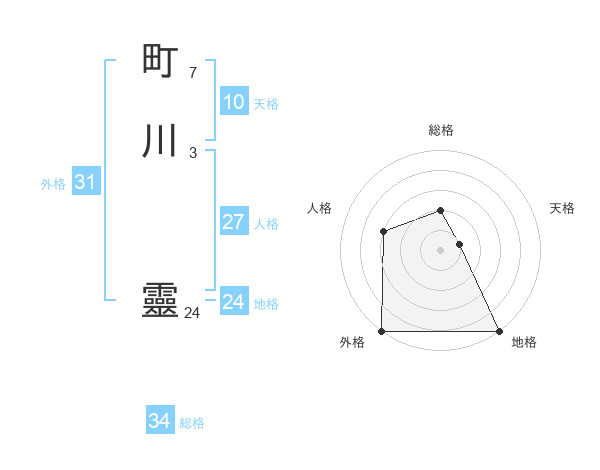 町川 靈さんの総格は34画の2点!
