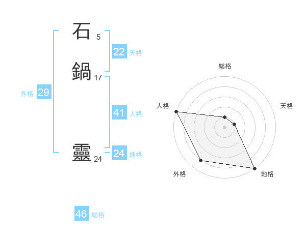 石鍋 靈さんの総格は46画の1点!