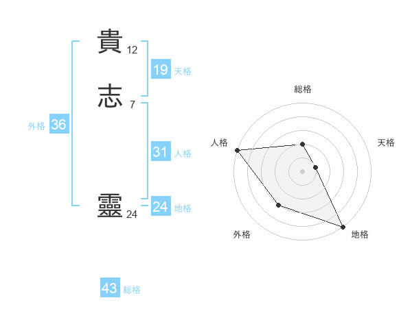 貴志 靈さんの総格は43画の2点!