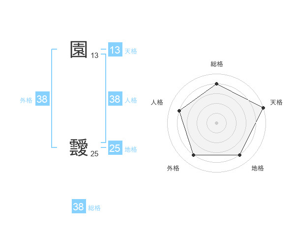 園 靉さんの外格は38画の4点!