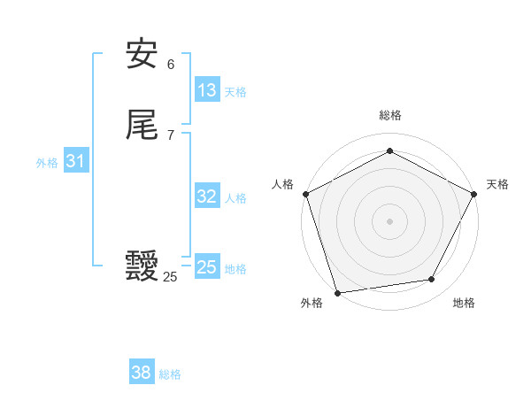 安尾 靉さんの総格は38画の4点!