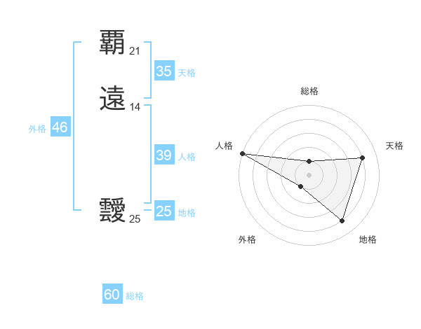 覇遠 靉さんの総格は60画の1点!