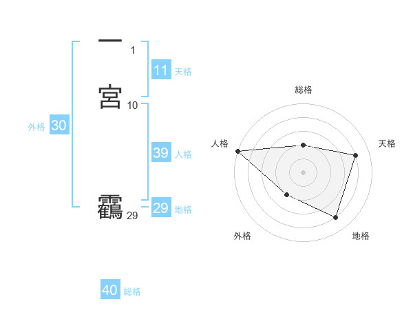 一宮 靏さんの天格は11画の4点!