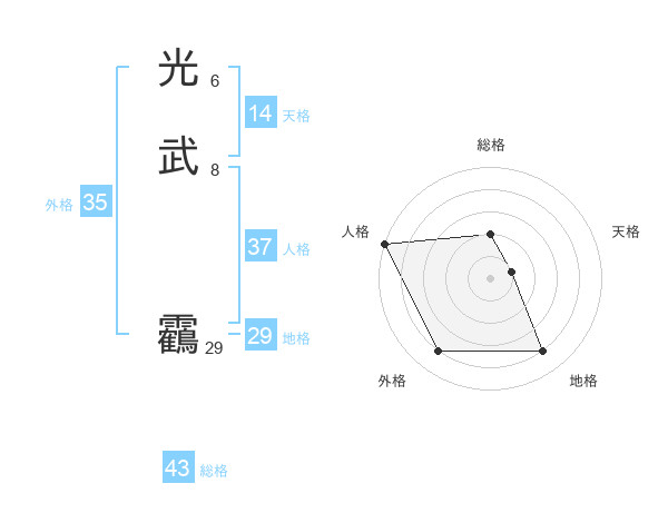 光武 靏さんの総格は43画の2点!