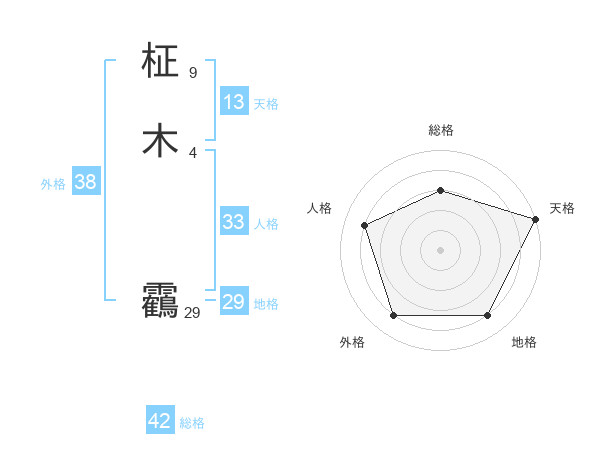 柾木 靏さんの総格は42画の3点!