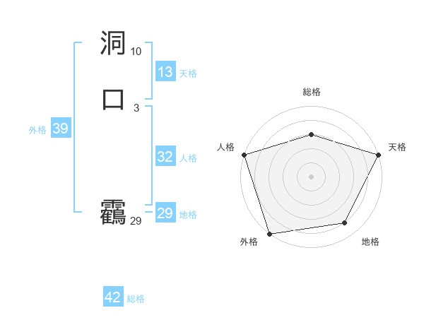 洞口 靏さんの天格は13画の5点!