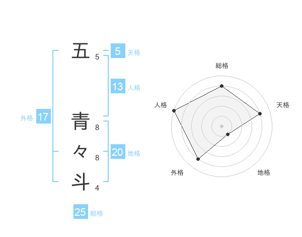 五 青々斗さんの総格は25画の4点!