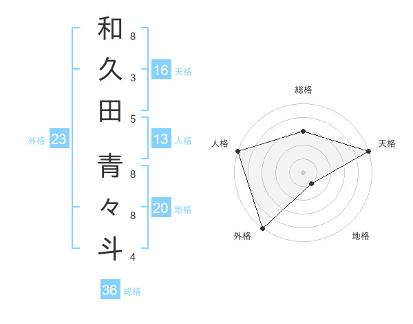 和久田 青々斗さんを姓名の画数から五運を鑑定