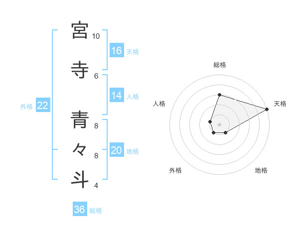 宮寺 青々斗さんを姓名の画数から五運を鑑定
