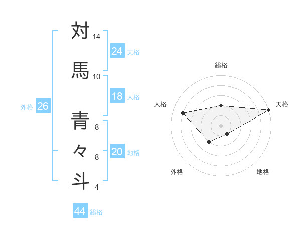 対馬 青々斗さんの総格は44画の2点!
