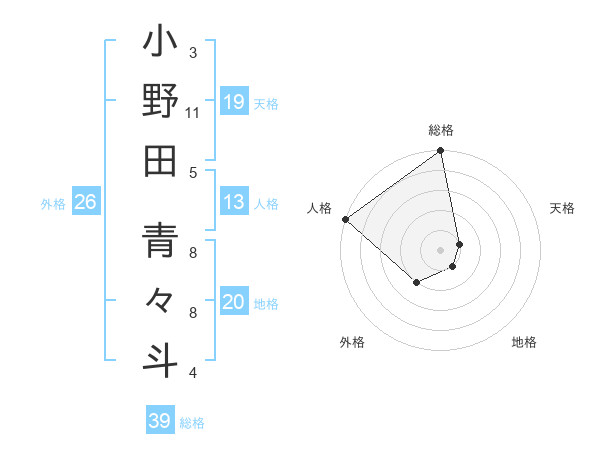 小野田 青々斗さんを姓名の画数から五運を鑑定