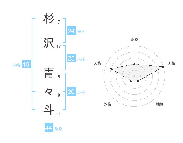 杉沢 青々斗さんを姓名の画数から五運を鑑定