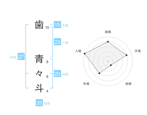 歯 青々斗さんの総格は35画の4点!