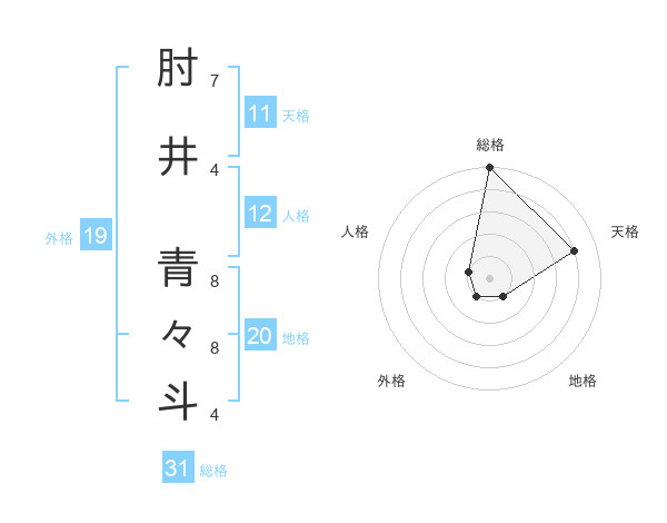 肘井 青々斗さんの総格は31画の5点!