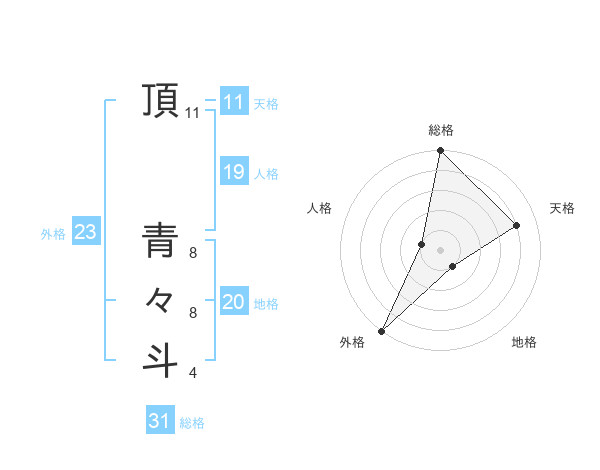 頂 青々斗さんを姓名の画数から五運を鑑定