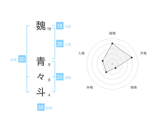 魏 青々斗さんを姓名の画数から五運を鑑定