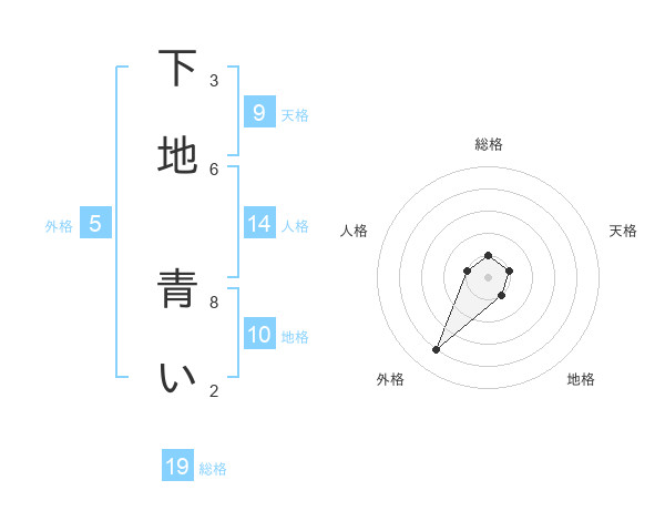 下地 青いさんの総格は19画の1点!