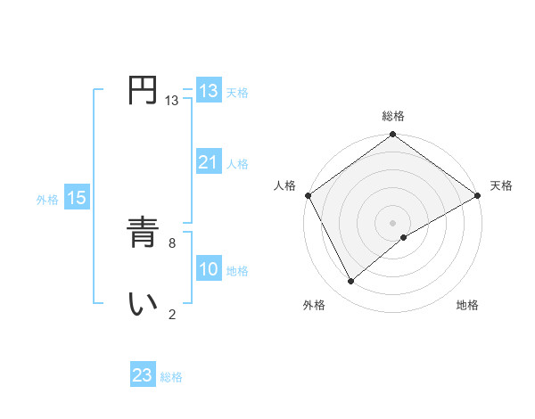 円 青いさんの天格は13画の5点!