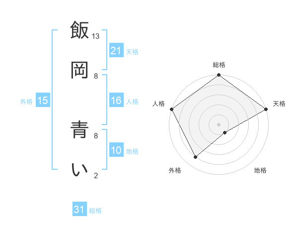 飯岡 青いさんを姓名の画数から五運を鑑定