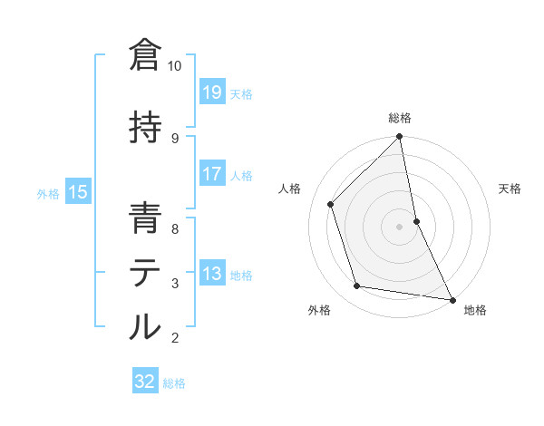 倉持 青テルさんを姓名の画数から五運を鑑定