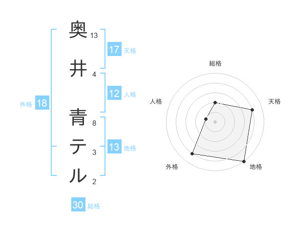 奥井 青テルさんを姓名の画数から五運を鑑定